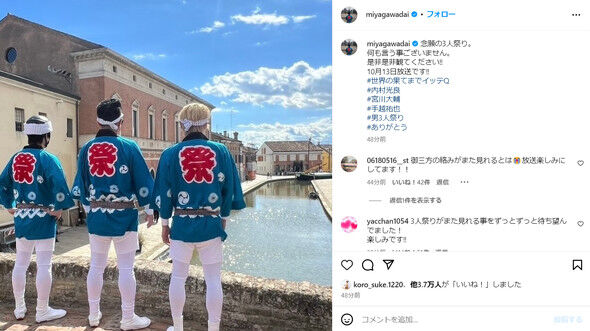 『イッテQ!』手越祐也の復帰回、内村&宮川との絆を確かめる濃密な放送に 見守ったスタジオもしみじみ、イモト「また出てほしいな」 …宮川は「捕まえた」と手越を網で捕獲した。「びっくりした!なになになに」と戸惑う手越に「久しぶりー」とあいさつ。手越は「『イッテQ』出れるの?」と聞くと… (出典:オリコン) |